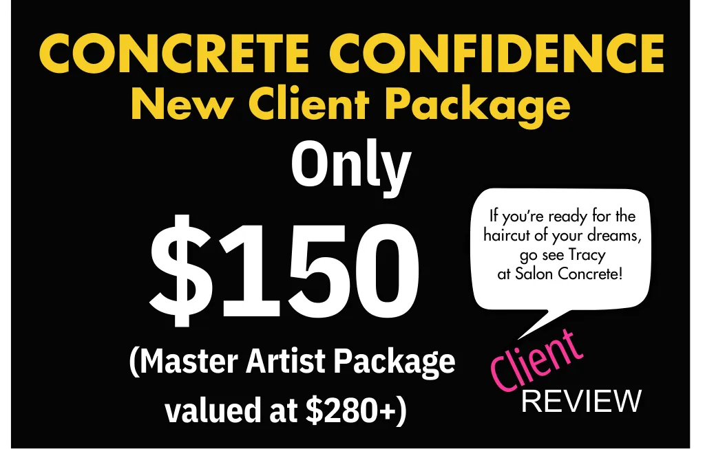 This special deal is available only to new clients making it a unique opportunity to experience the best in hair care at an incredible price.The Salon Concrete Experience: More than just a haircut, itʼs a chance to enjoy a personalized, relaxing, and luxurious experience from the moment you step in the door
